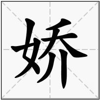 (7) 同“骄”。骄横 [over-bearing]。如:娇傲(骄傲;受宠而倨傲);娇奢(骄横奢侈);娇阳(骄阳);娇妇(娇横之妻)