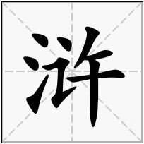 (1) (形声。从水,许声。本义:水边,指离水稍远的岸上平地)
