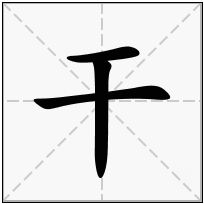(6) 天干 [Stems;Heavenly Stems]。如:干支(天干地支,实际上是“幹枝”的一种比喻说法)