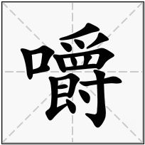 (1) (形声。从口,爵声。本义:以牙磨碎食物)