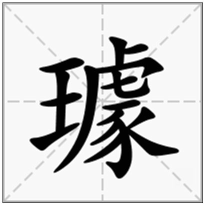璩拼音: qú, 笔划: 17部首: 王 五笔输入法: ghae 笔顺编号:11212153 151353334〈姓〉耳环 [ear-ring]璩,环属。——《说文新附》玉名 [a jade name]绡绮为席,犀璩为镇。——邹阳《酒赋》[ 璩 ] 拼音:qú 繁体:璩部首:王 部首笔划:4 字意五行:木简体笔划:17 台湾笔划:未知 康熙笔划:18拼音输入:qu 五笔输入:GHAE 吉凶寓意:吉笔顺:横横竖横竖横折撇横折横撇折撇撇撇捺璩(后来衍生为“琚”Ju姓氏)