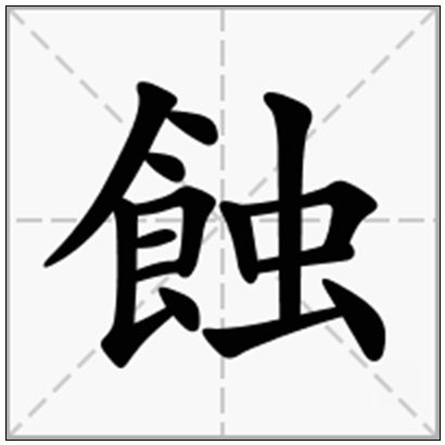蝕的拼音 | shí | 蝕的繁体 | 蝕 | 蝕的部首 | 虫 |