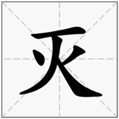 灭的拼音 | miè | 灭的繁体 | 滅 | 灭的部首 | 火 |