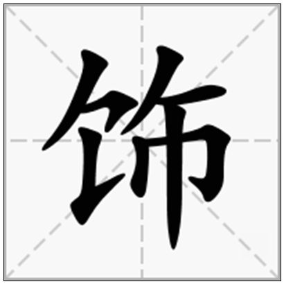 饰,形声。从巾,从人,食声。人佩巾有装饰作用。本义:刷拭)