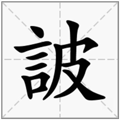 康熙字典【酉集上】【言字部】诐 ·康熙笔画:12 ·部外笔画:5《唐韵》《集韵》《韵会》彼义切,陂去声。《说文》辩论也。《广雅》慧也。《玉篇》佞谄也。《广韵》譣诐也。《诗·周南·卷耳序》内有进贤之志,而无险诐私谒之心。《释文》诐,妄加人以罪也。崔云:险诐,不正也。《孟子》诐辞知其所蔽。《注》诐,偏陂也。《前汉·叙传》赵敬险诐。《师古注》诐,辩也。一曰佞也。 又《正韵》兵媚切,悲去声。义同。又《六书故》与陂通。《荀子·成相篇》谗人罔极,险陂倾侧。《注》陂与诐同。又《广韵》彼为切《集韵》《韵会》班糜切,音陂。又《正韵》逋眉切,音悲。又《集韵》滂禾切,音坡。义同。考证:〔《诗·周南·卷耳序》内有进贤之志,而无险诐私谒之心。《笺》诐,妄加人以罪也。〕谨照塬书笺改释文。