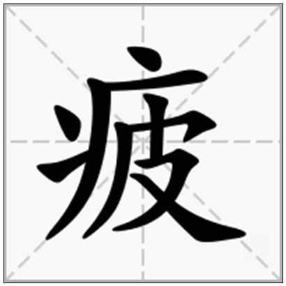 疲的结构 | 半包围结构 | 疲的注音 | ㄆㄧˊ、 | 疲的郑码 | txi |