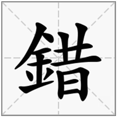 錯的拼音 | cuò | 錯的繁体 | 錯 | 錯的部首 | 釒 |