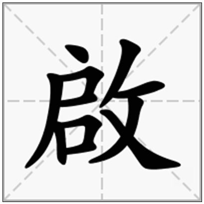 啟的美语翻译 | to inform; Qi son of Yu the Great 禹, reported founder of the Xia Dynasty 夏朝(c. 2070-c. 1600 BC); to enlighten or awaken; to state; to initiate; to open; to start |