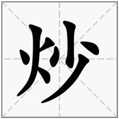 炒的拼音 | chǎo | 炒的繁体 | 炒 | 炒的部首 | 火 |