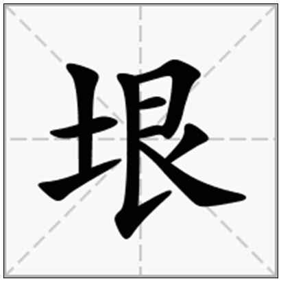 垠是形声字,土为形,艮为声。垠部外笔画:6,总笔画:9,本义是边际,尽头的意思。