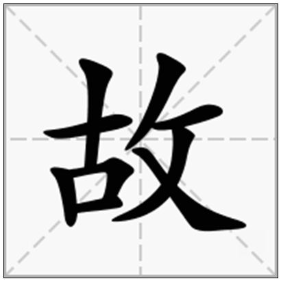 故,gu,从古从攴,使为之也。从攴古声。(1) 形声。从攴( pū),古声。从“攴”,取役使之意。本义:缘故,原因。(2) 同本义 [cause;reason]在汉语里有多种释义,可作名词、动词、形容词、副词、连词、代词。