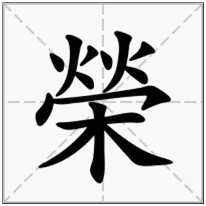 榮的美语翻译 | thriving; surname Rong; glory; honor |