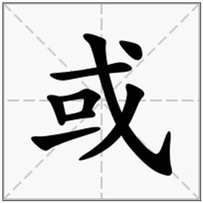 或,yu,huo,从口(人口)从一(疆界)从戈(守卫城池)。或和国是古今字,本义邦国、疆域;借指某人、有的。(1) 会意。甲骨文字形从囗(人口),从一(疆域)从戈(以戈守之)。表示以戈卫国。本义:国家。用本义时读 yù有人,有的——泛指人或事物 [some;someone]古文字中,“国”(繁体字为国)字从口从或,究竟是“口”还是“或“为原形,众说纷纭。马叙伦先生主张口为国之原字,......日本学者后藤朝太郎则主张“或”为国(国)之原字。他认为加以口者,系秦汉以后之事。并于《国家学会》杂志第二十七卷第六号上发表论文,说之如下:“国(国)字作口,乃秦汉以来之事,周代春秋战国时代,只有或字。”按:或为戈与口之合体,后汉许慎于《说文解字》中亦曰,或者,邦也。